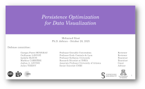 Mohamed Kissi Ph.D. Thesis October 2025 Committee: G.P. Bonneau (Reviewer), G. Lavoué (Reviewer), I. Bloch, M. Carrière, J. Levine, J. Tierny (Advisor) |